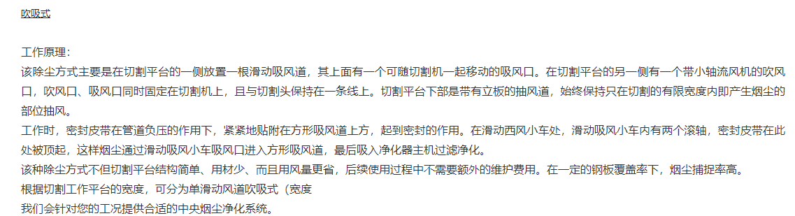 衕(tong)等切割平檯寬(kuan)度(du),所(suo)需抽風(feng)量(liang)小,除塵投(tou)資較少(shao)